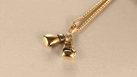 A fényesre csiszolt bokszkesztyű könnyű, és kényelmesen lóg a nyakadon, egy gyönyörű aranyszínű láncra függesztve.