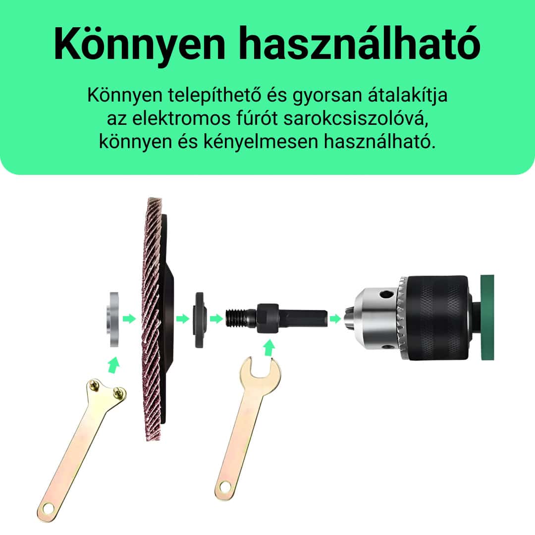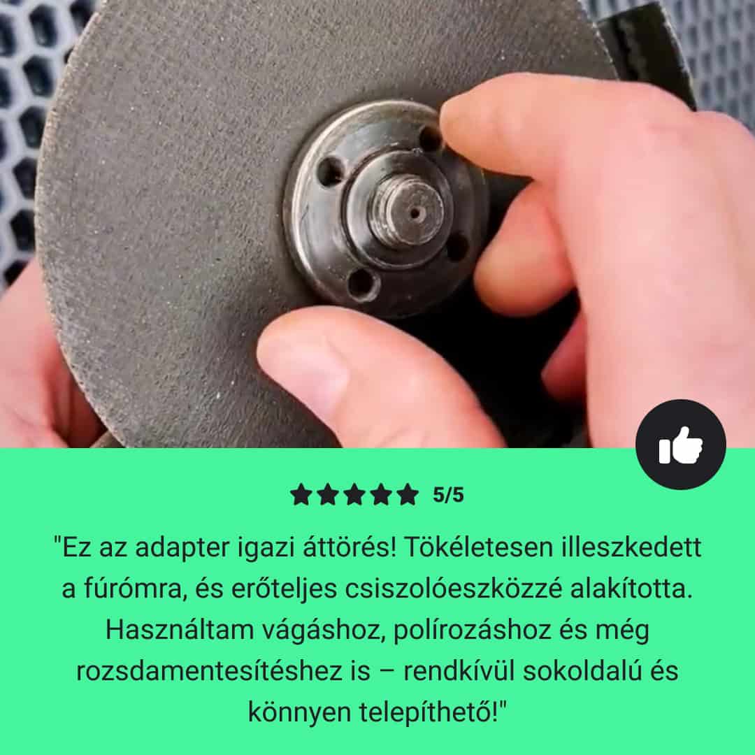 „Egyszerű, de nagyszerű eszköz! Könnyen lehet használni sarokcsiszoló tárcsákat a fúrógépen. Tartós kivitelezés, és még kulcsok is járnak hozzá a gyors beállításhoz.”