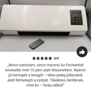 Nyári meleg vagy téli hideg? Az Enchantia kényelmesen tartja a teret erős fűtéssel és egy funkcióval, amely a levegőt a szobába juttatja—fúrás nélkül, technikus nélkül, várakozás nélkül!