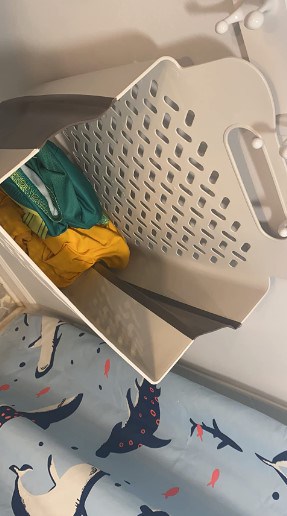 „A mostani régi házunkban nincs hely és tárolóhely. A folyosó fürdőszoba három gyerek számára elég nagy, de nem akadályozza meg. Kibővítve ebbe a tollba egy hét piszkos ruha fér három gyerek számára.”