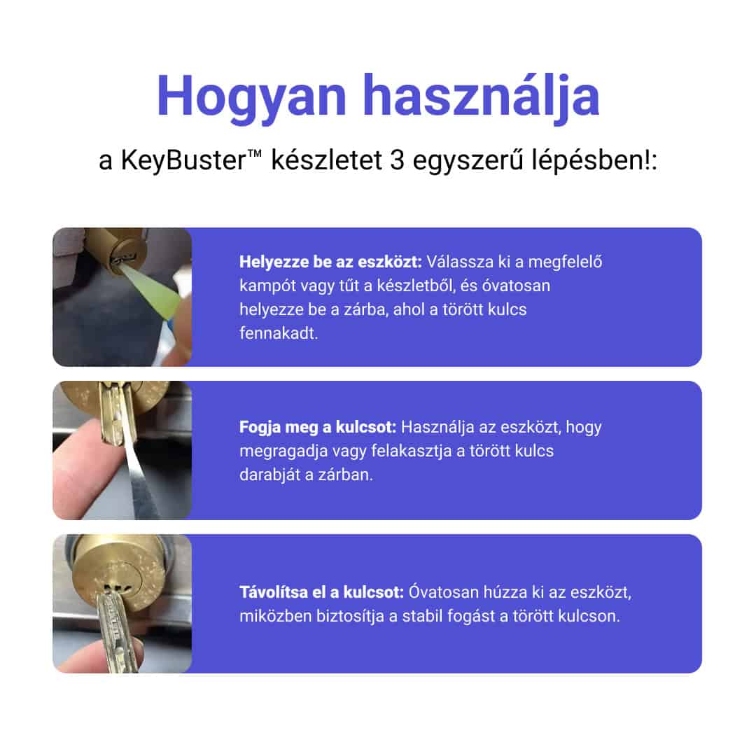 Spóroljon pénzt és időt a törött kulcsok eltávolításával saját magának, anélkül, hogy drága zárcserére lenne szükség.