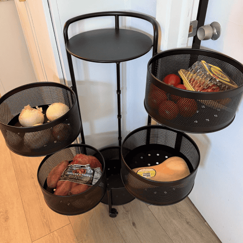 Szükséged van rendre a konyhában? A SpinRack™ 360°-ban forgatható megoldást kínál gyümölcsök, zöldségek, háztartási termékek számára – összeszerelés nélkül.