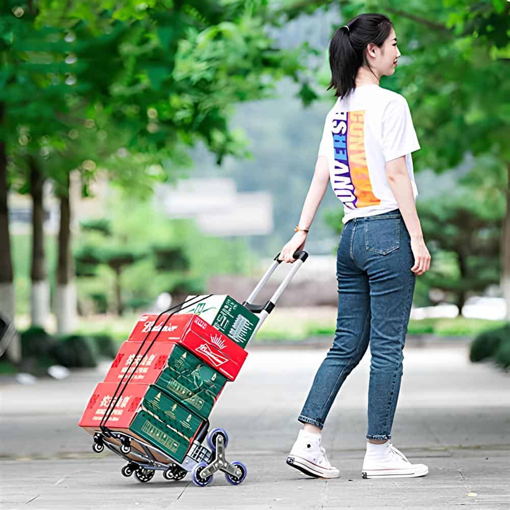 - Nincs emelés a lépcsőkön – a kerekek felfelé tolják a terhet, önnek csak vezetnie kell a kocsit.