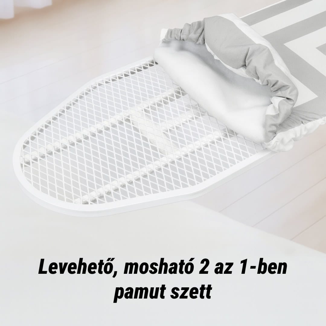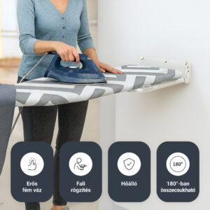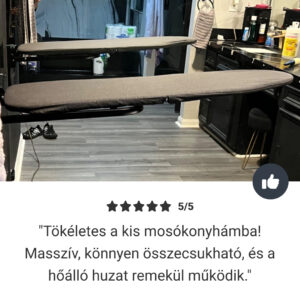 Imádom a helytakarékos funkciót! A forgó mechanizmus sokkal könnyebbé teszi a vasalást. A huzat vastag és tartós, a masszív szerkezet pedig nagy stabilitást biztosít. Nagyon ajánlom.