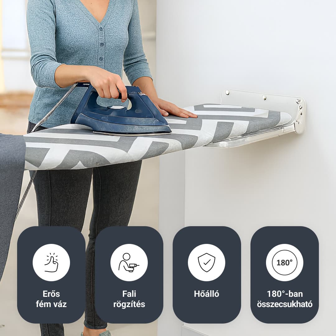 - Vastag és hőálló borítás: Úgy tervezték, hogy ellenálljon a magas hőmérsékletnek és megakadályozza a ruhák tapadását.